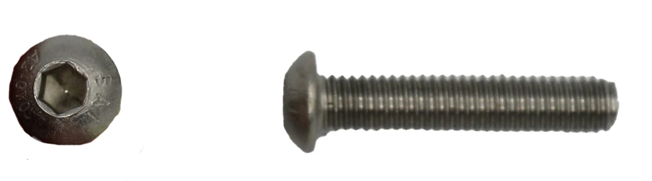 Metrisk gänga. OBS! På grund av skruvhuvudets geometri har dessa fästelement en lägre belastningskapacitet. Fästelement i rostfritt stål med nedsatt bärkraft är antingen märkta med en 0 före hållfasthetsklassen, till exempel ”A2-070”, eller bara med stålsorten, till exempel ”A2”.
