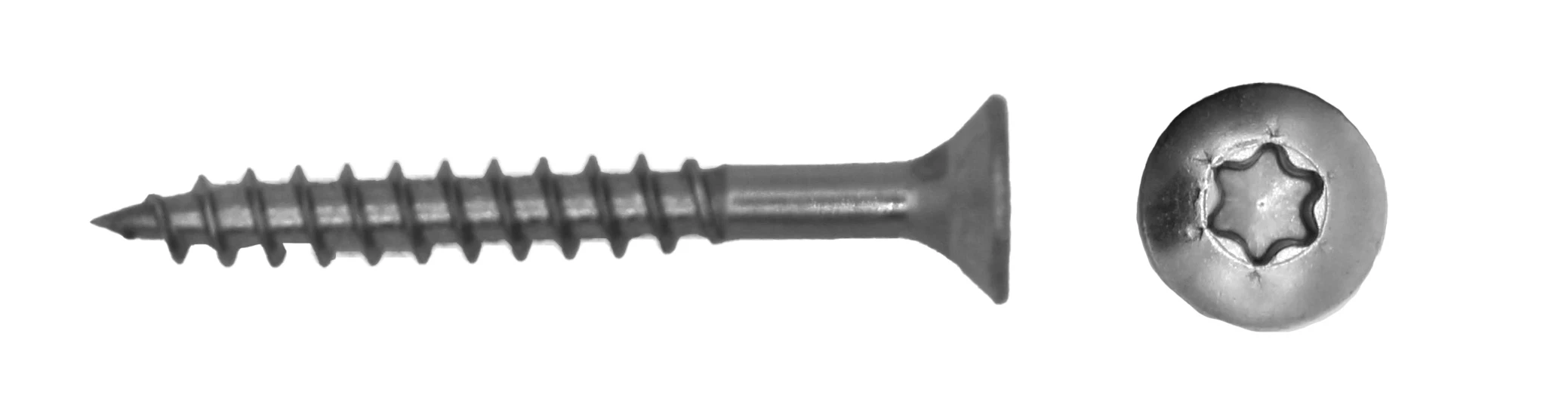 Material rostfritt stål (A2). Försänkt universalsskruv med torx-huvud, delgängad och helgängad (gängan anges i produktnamnet, t.ex. helgängad 6x60/60 och delgängad 6x60/36). För allmänt bruk i trä- och skivförband. Torx-huvudet ger bra grepp för verktyget.