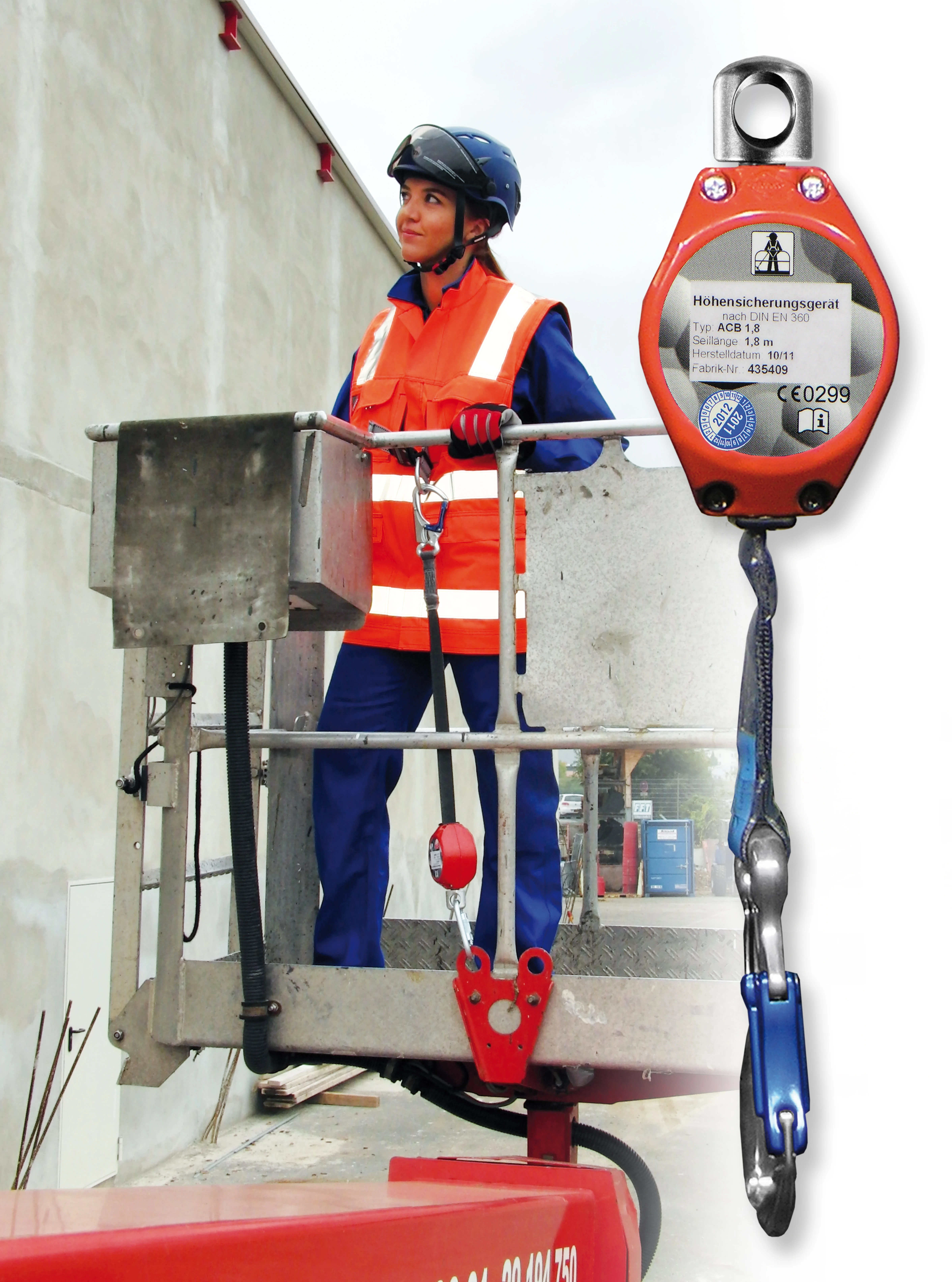 1,8 m självinrullande fallskyddsblock med integrerad falldämpare för arbete i arbetskorgar. Speciellt utformat för arbete på alla typer av mobila plattformar: Testat enligt double sharp edge-krav över båda skarpa (radie=0,5 mm) kanter på räcke. Stoppar fall och dämpar ryckkrafter mot arbetskorgens förankringspunkt till under 3 kN, i enlighet med flera arbetskorgtillverkares rekommendationer. Självinrullande funktion. Vridbar fästanordning som förhindrar trassel. Kan användas i alla positioner. Lämplig även för användning över andra skarpa kanter: valsade stålprofiler, träbalkar och över stoppade rundade takkantsavslut etc. OBS! Fallskyddsblock med band är dock inte avsedda för miljöer där kanten är mycket vass eller ojämn (t.ex. med grader), som till exempel håldäck, gjuten betong, vassa plåtkonstruktioner osv. Se alltid bruksanvisningen innan användning. Det krävs ovanligt kort säkerhetsavstånd under användaren: Vid förankring över användaren 2 m och vid förankring i arbetsplanet 3,9–4,0 m (läs bruksanvisningen). Hölje i aluminium, kopplingsel i band. Bandet är utrustat med en automatiskt låsande karbinhake i aluminium. Längd 1,8 m och vid behov kan ett 40 cm förlängningsband användas för att öka rörelsefriheten (artikelnummer 45-IK 6 B 40 R). Uppfyller kraven enligt CE EN 360:2002 och CNB 11060 2008 typ A. Godkänd av IPAF (International Powered Access Federation). Maximal livslängd 10 år.