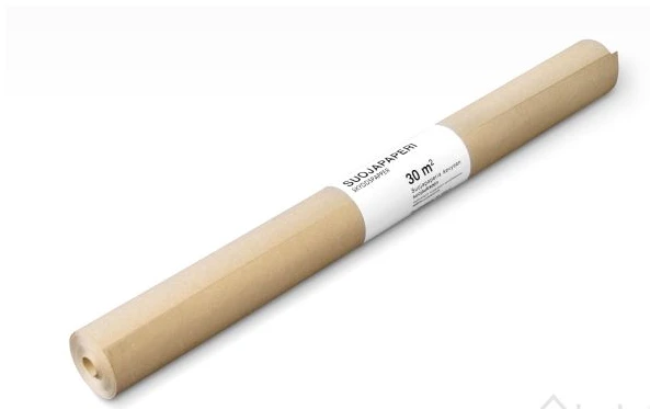 Paavo skyddspapper och kartong tillverkas av testliner, det vill säga återvunna fibrer. Paavo skyddspapper med plastyta 30 m² kompletterar Paavo-familjen tack vare sin fuktbeständighet.
