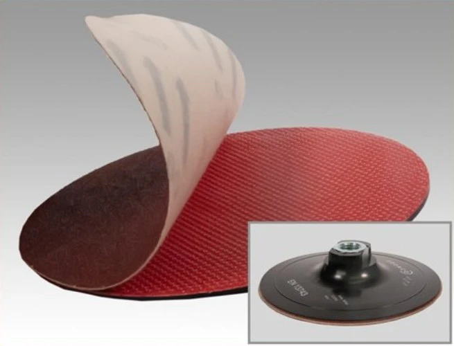 Hård och orörlig kardborrerondell för slippapper och polersvampar med kardborre. M14 gängfäste. Utan dammutsugsöppningar. Max varvtal med 125 mm rondell: 12 250 varv/min, och med 150 mm rondell: 10 200 varv/min.