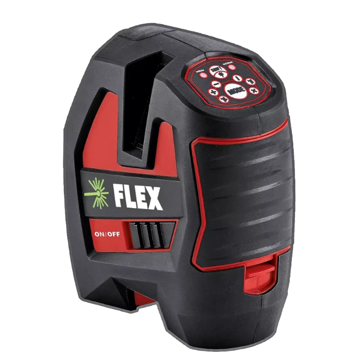 FLEX ALC 3/1-G korslinjelaser. En horisontell och två vertikala laserlinjer i 90° vinkel samt lodfunktion, alla kan användas individuellt. Specialbelagda linser säkerställer rena och mycket exakta laserlinjer. En bra och effektiv korslinjelaser.