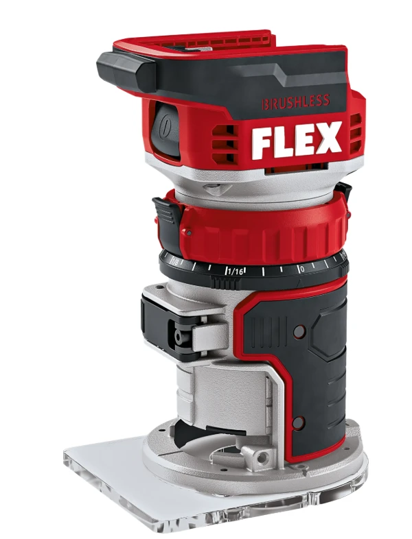 Kombination av kantfräs och överfräs. Med verktygslös omställning kan du enkelt ändra maskinen från kantfräs till överfräs. Snabbt och enkelt byte av frässtål tack vare integrerad spindellåsning. Fästet kan användas för fräsar med en skaftdiameter upp till 8 mm. Med nollställningsfunktion för skalindelning, inställning av fräsdjup och steglös finjustering av fräsdjupet med vridring. Fräsbordet med gummerade handtag och låsfunktion ger säker styrning. Basplattan i plexiglas ger alltid användaren fri sikt mot fräsen för perfekta resultat. Mångsidig användning inom träbearbetning, renovering, gipsskivekonstruktion och formtillverkning. Fräsning av hörnfogar, kopplingar, bågar/konturer med mallar, omfräsning av laminerade profiler. Fräsning av massivt träkanter, urtag och spår med mallar och styrhjul, tillverkning av mallar för produktion med mera. Kolborstfri motor för mer kraft och längre underhållsintervall. Elektronisk säkerhetsbroms. Hastighetsreglering (6 inställningar). Utsuganslutning Ø 36 mm eller adapter. Elektroniskt styrsystem skyddar maskinen, förlänger livslängden och ökar effektiviteten. LED-display visar batteriets laddningsnivå. FLEX batterisystem passar alla nya 18 V FLEX-verktyg. Levereras utan batteri och laddare.