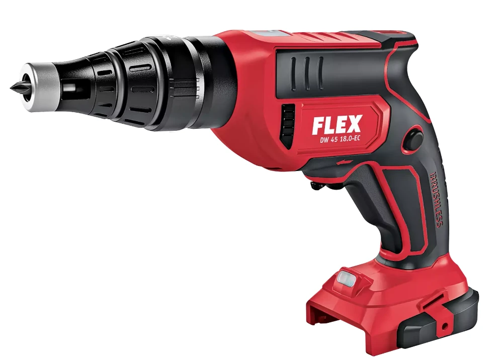 FLEX DW 45 18.0 är en lätt och snabb batteridriven skruvautomat för smidig montering av gipsskivor. Skruvdragaren är avsedd för bandade skruvar på 25–55 mm och har både lättjusterbart djupstopp och val av skruvlängd. Det snabbt avtagbara skruvhuvudet gör det enkelt att efterdra och justera skruvar vid behov. Den kolborstfria motorn ger lång livslängd kombinerat med förbättrad prestanda. Dessutom kan matarenheten roteras 360°, vilket underlättar skruvning på svåråtkomliga ställen.