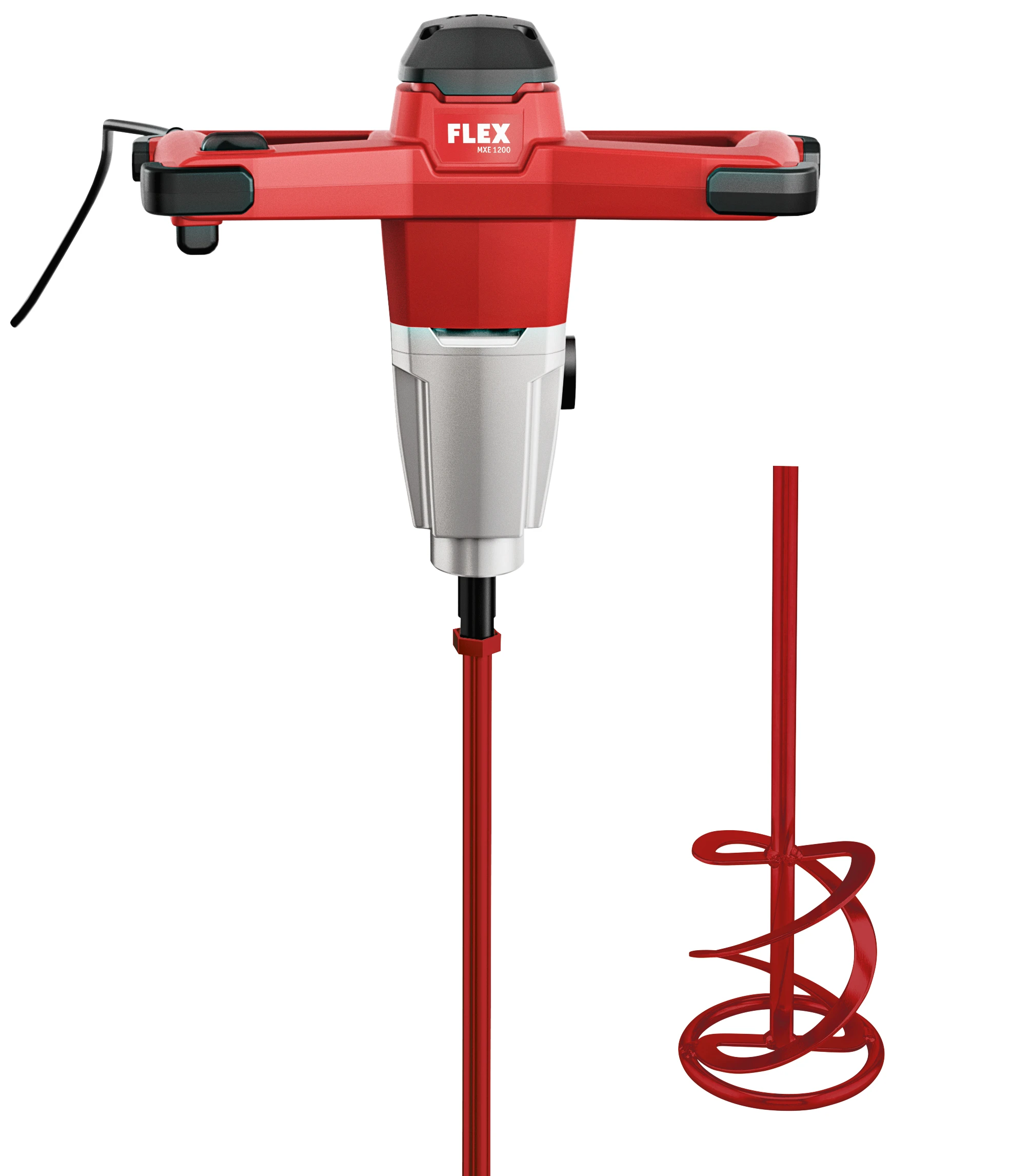 FLEX MXE 1200 är en kraftfull 1200 W blandare med enstegsväxel och högt vridmoment samt steglös hastighetsreglering. Tre varvtalsområden, överbelastningsskydd, ergonomiskt grepp och gummikuddar som skyddar maskinen. Lämplig för upp till 60 kg material som bruk och betong.