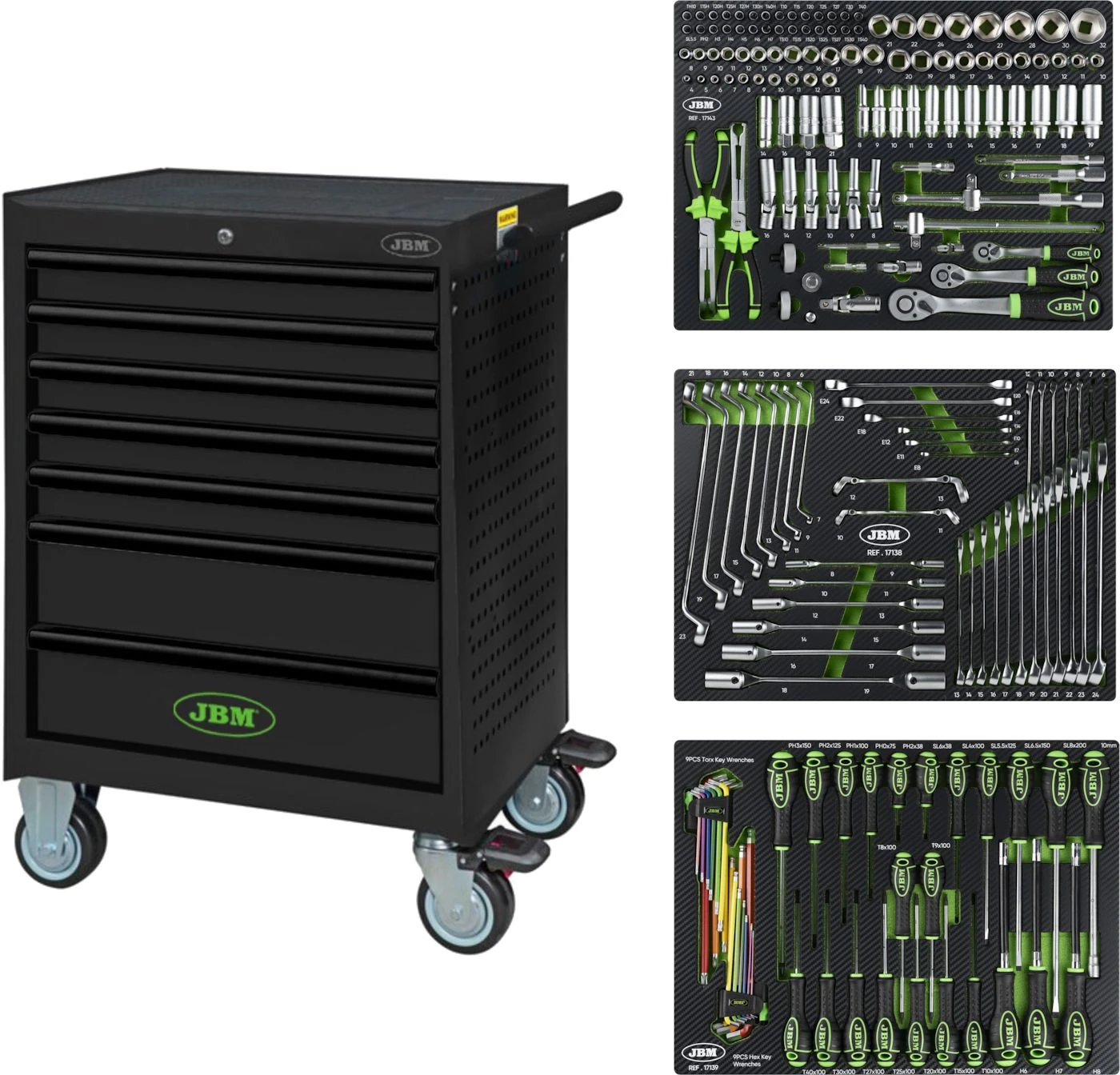 JBM by Boxo verktygsvagn med verktyg, 196 delar.