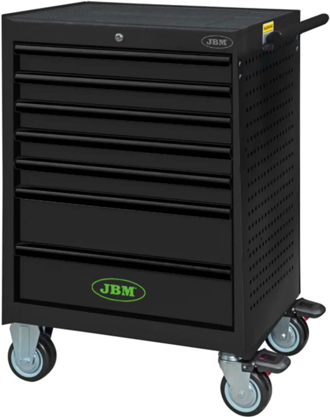 Hållbar verktygsvagn med verktyg, 348 delar (3 skuminsatser). 7 lådor, 5 grunda (569x397x75mm) och 2 djupa (569x397x152mm). Varje låda har en lastkapacitet på 36 kg. Klarar tunga laster. Lätt och enkel att flytta. Verktygen är väl organiserade och prydligt placerade i EVA-moduler.