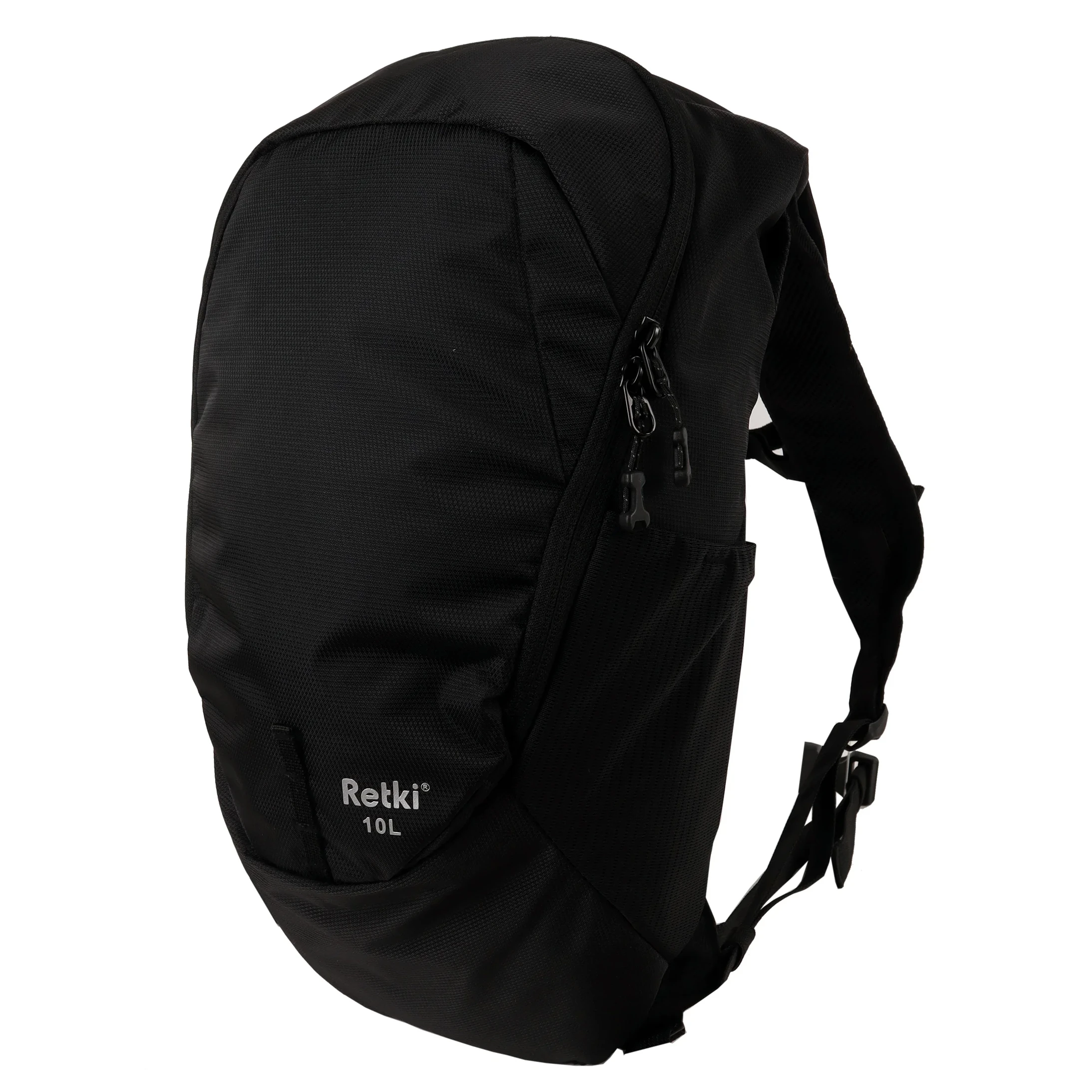 En lätt och smidig ryggsäck på 10 liter som passar för dagsutflykter och fritidsaktiviteter. Vikten är 375 gram och måtten 47x22x16 cm. Ryggsäcken har höftrem, bröstrem och är förberedd för vätskesystem. Tillverkad av återvunnen nylon, färg svart. Vätskeblåsa medföljer ej.