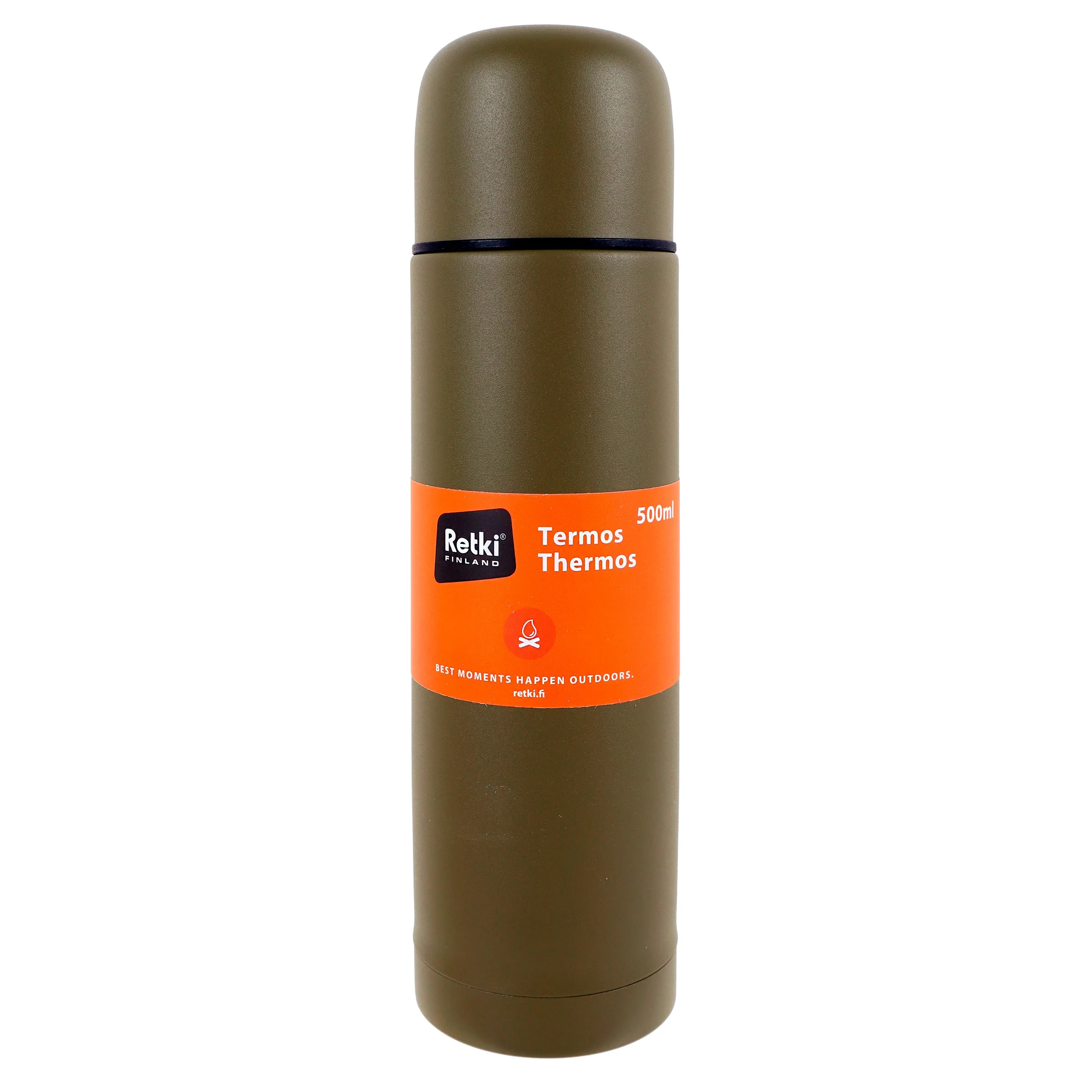 Ståltermos på en halv liter med praktiskt snabbkork som öppnas med tryckknappar.