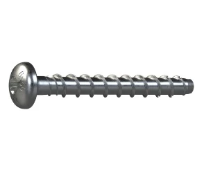 ETA-hyväksytty kupukantainen betoniruuvi (6 mm) soveltuu halkeilleeseen ja halkeilemattomaan betoniin sekä tiiliin. Vaatii vain pienen porareiän, on täysin irrotettava ja mahdollistaa pienet etäisyydet. Sisä- ja ulkokäyttöön. Käyttökohteita ovat esimerkiksi telineet, istuimet, hyllyt ja kaiteet.