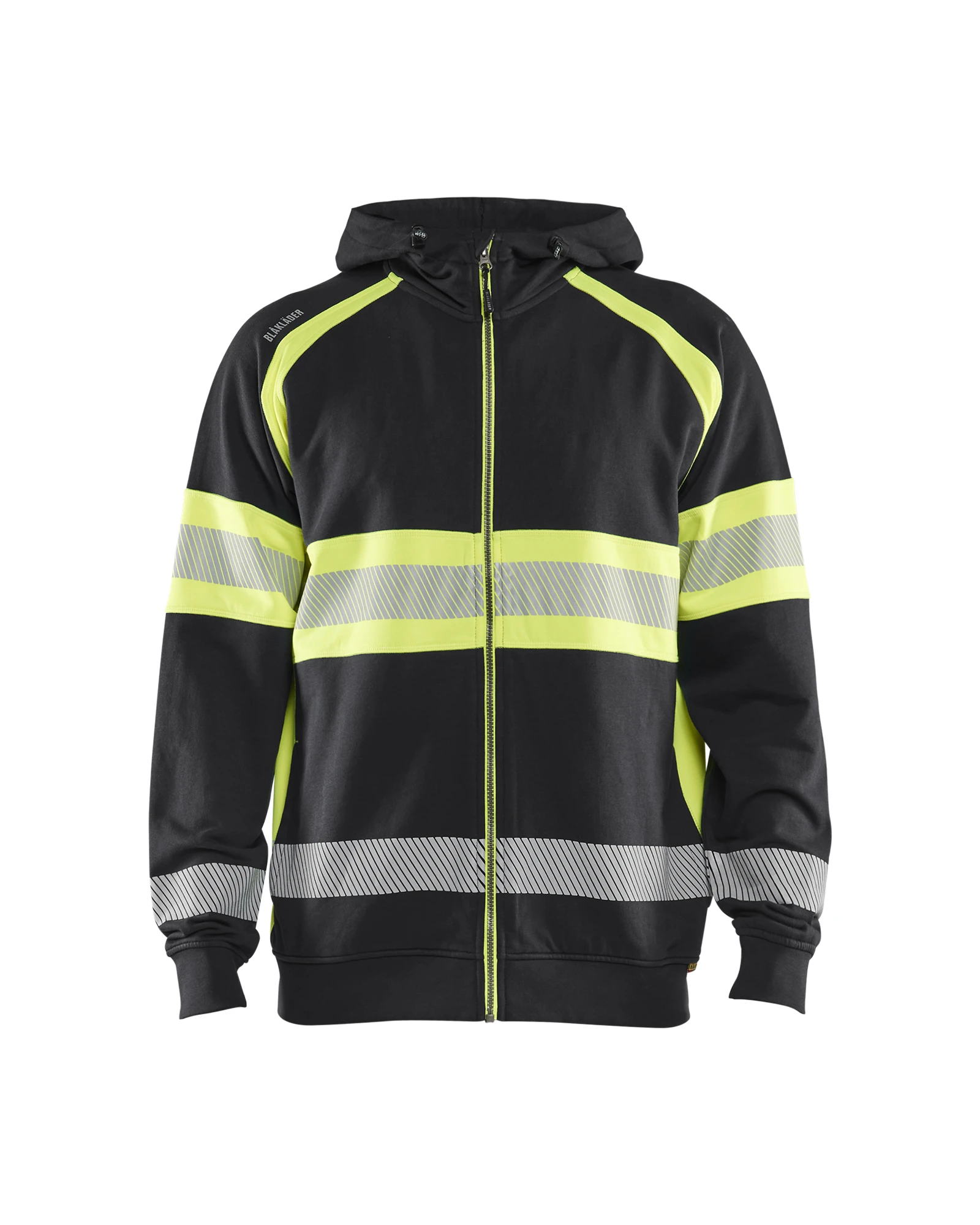 Mukava ja pehmeä huomiovärinen huppari, jossa on joustavat ja hengittävät katkonaiset heijastimet. Siinä on sivutaskut, korkea kaulus, edessä pitkä vetoketju sekä resorit helmassa ja hihoissa. Tummat osat ovat puuvillaa, heijastavat alueet polyesteriä. Sertifioitu EN ISO 20471 luokka 1.