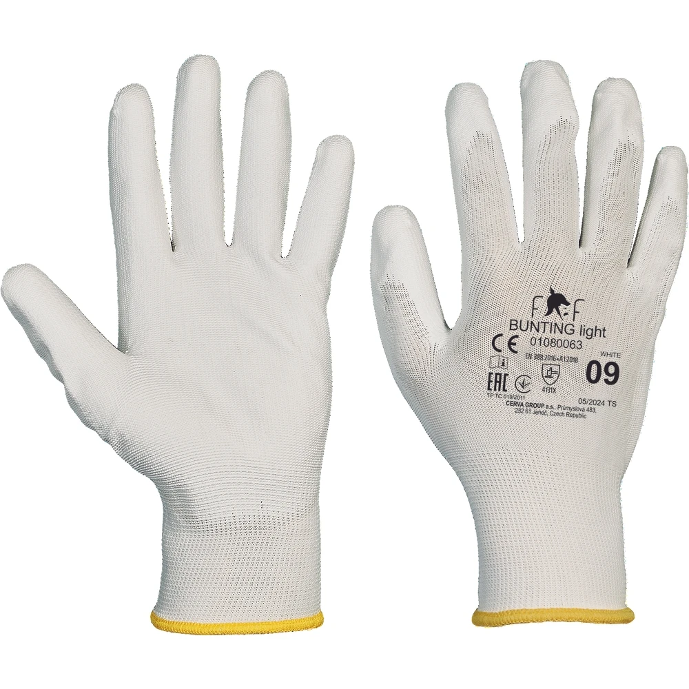Saumattomat polyesterikäsineet, joiden kämmenet ja sormenpäät on pinnoitettu polyuretaanilla. Käsineissä on myös joustava ranneke, joka takaa hyvän istuvuuden ja käyttömukavuuden. Nämä käsineet sopivat erilaisiin tarkkuutta vaativiin töihin ja suojaavat käsiä samalla säilyttäen sorminäppäryyden.