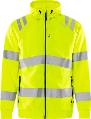 Näkyvä vetoketjullinen huppari on valmistettu kierrätetystä materiaalista. Pehmeä ja joustava takki tarjoaa mukavaa liikkumisvapautta päivittäisessä työssä. Tuotteessa on kätevät vetoketjutaskut ja se soveltuu hyvin erilaisiin työtehtäviin. Konsepti Trofta yhdistää mukavuuden ja kestävän kehityksen.