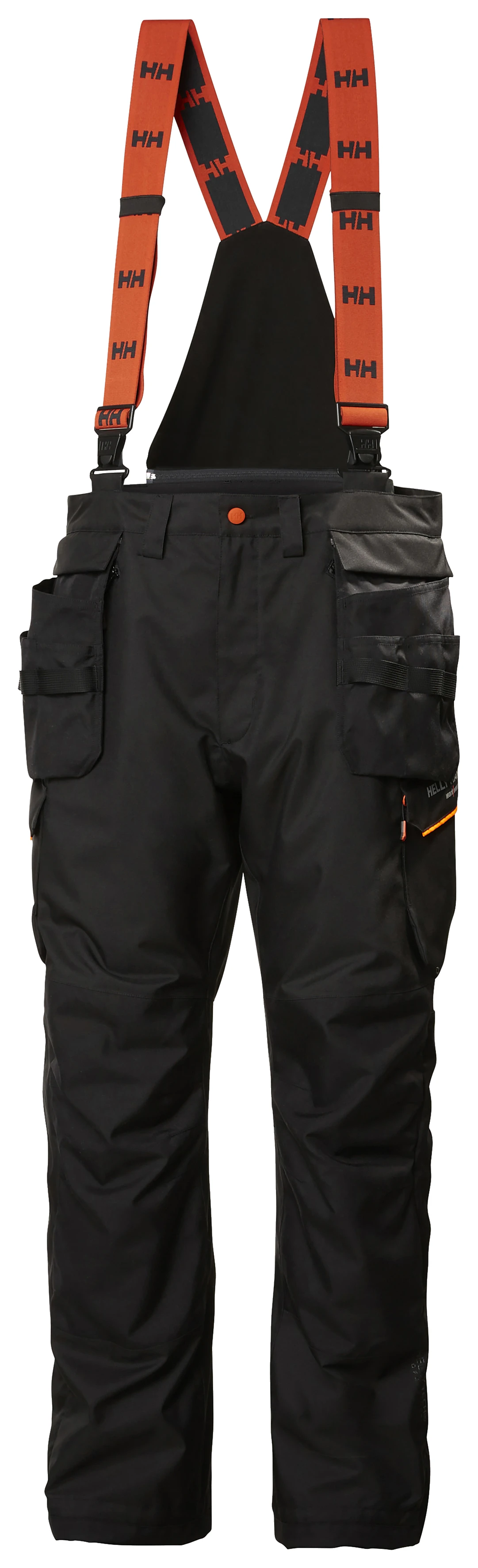 Työhousut on valmistettu kestävästä polyesteristä ja Cordura®-vahvikkeista, eristyksessä on kierrätettyä polyesteriä. Housuissa on EN 343- ja EN 342 -sertifikaatit, HH Connect™ ‑yhteensopivuus, teipatut saumat, YKK®-vetoketjut, irrotettavat olkaimet, monipuoliset taskut ja heijastavat yksityiskohdat. Lahjetta voi pidentää 5 cm.