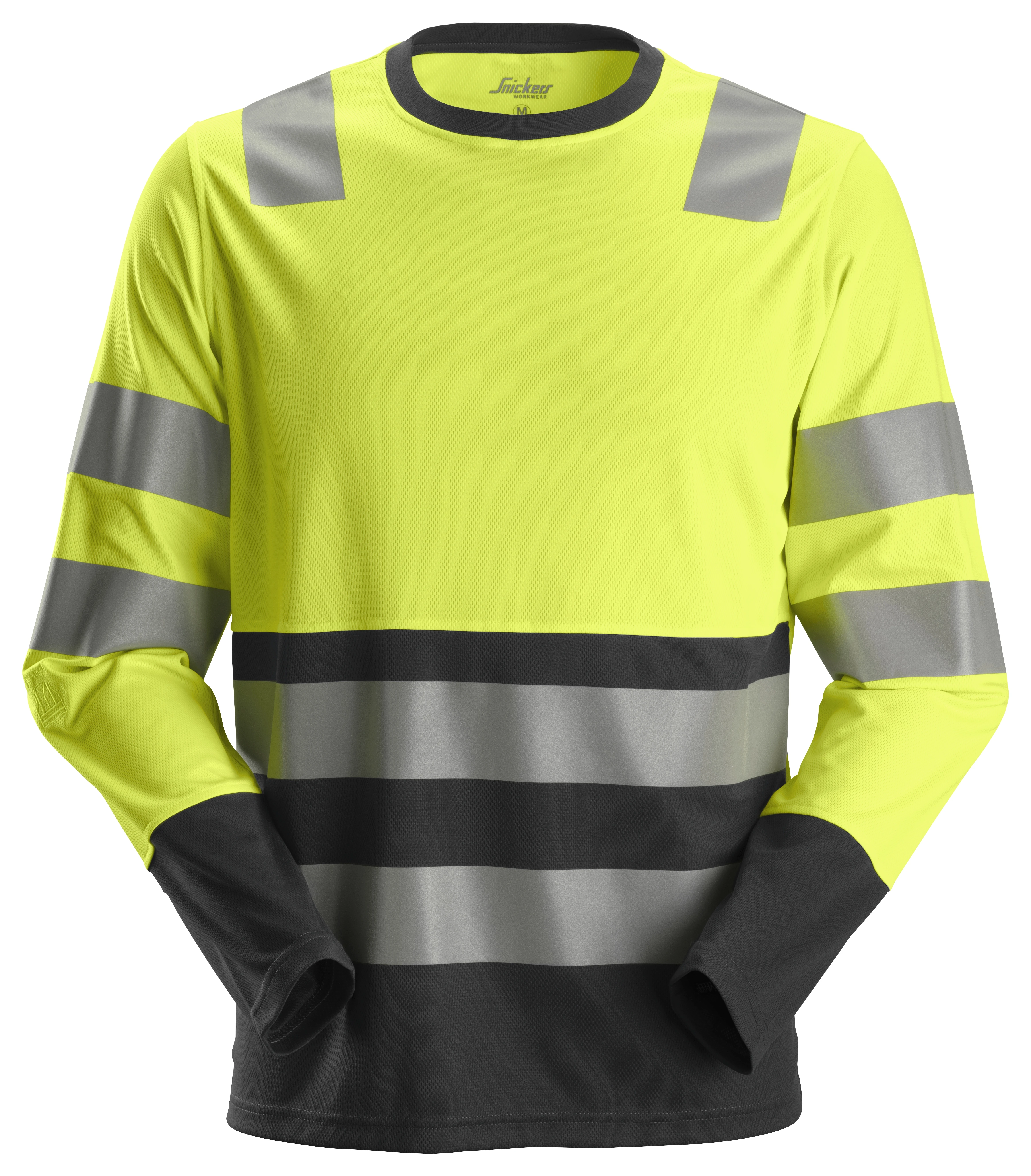 Pitkähihainen huomio-t-paita takaa hyvän näkyvyyden heijastinnauhoilla ja on valmistettu helposti pestävästä polyesterista. Erityinen kangas suojaa likaantuvia alueita, joten paita pysyy siistinä ja mukavana päivittäisessä käytössä sekä säilyttää ulkonäkönsä työpäivän jälkeen.