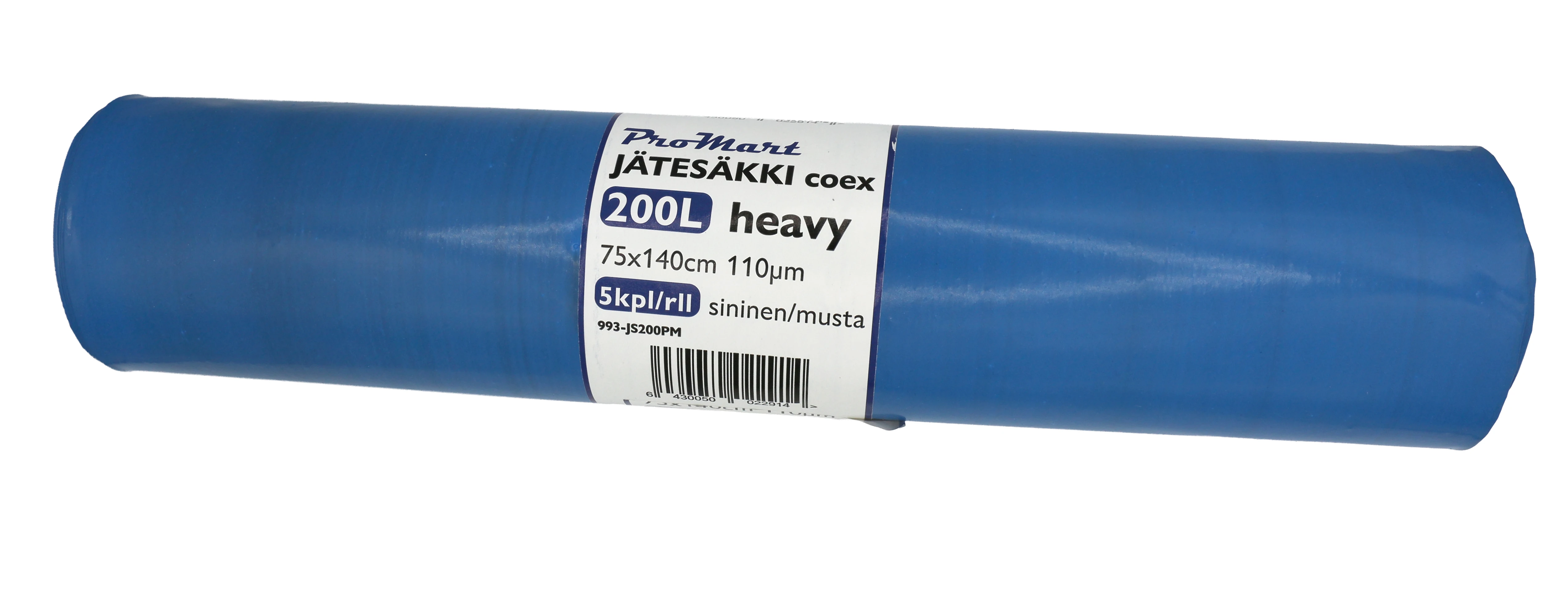 ProMart jätesäkki coex 200L heavy 750x1400x0,11mm sin/musta 5kpl/rll