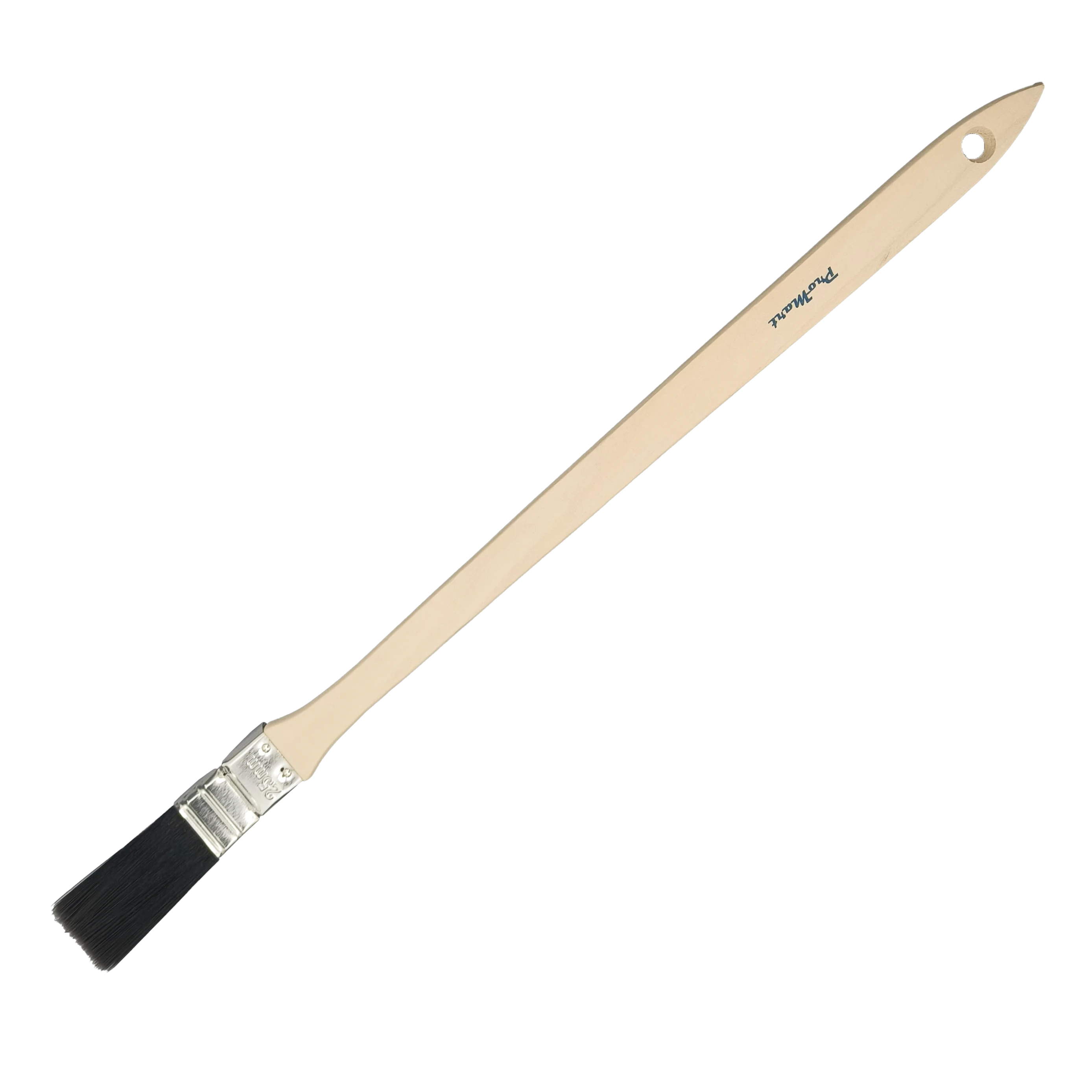 Laadukas patterisivellin, jossa on synteettinen harjas ja pitkä, 350 mm varsi. Sopii kapeiden ja vaikeapääsyisten alueiden, kuten pattereiden ja putkien taustojen maalaamiseen. Selkeä, tasainen jälki, hyvä kaikille maalityypeille, helppo puhdistaa ja uudelleenkäyttää. Saatavana eri harjaleveyksiä.