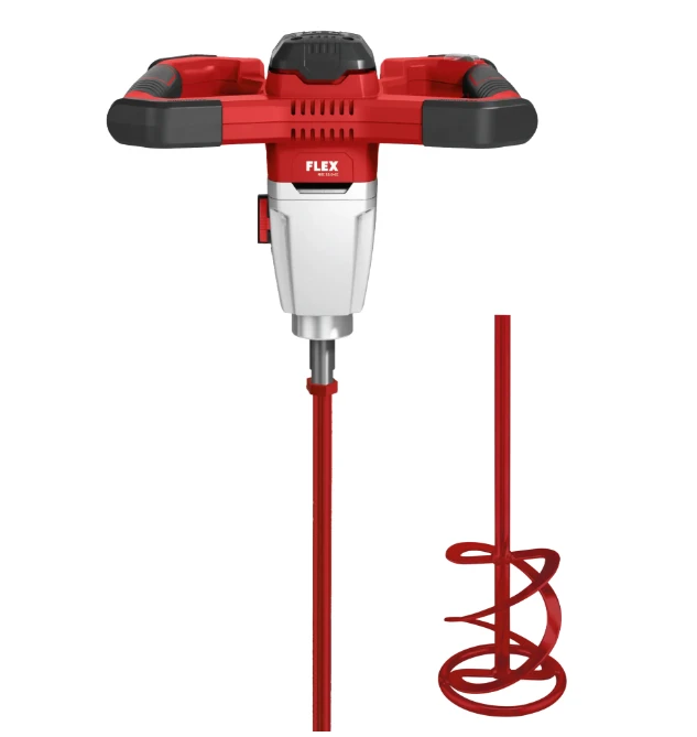 FLEX MXE 18.0 -akkukäyttöinen sekoituskone sopii ammattikäyttöön ja tarjoaa johdotonta tuottavuutta. Hiiliharjaton moottori lisää tehoa ja käyttöikää. Avaimeton vispilän vaihto, ergonominen kahva ja neljä kumipuskuria parantavat käyttöä ja suojaavat laitetta päivittäisessä työssä.
