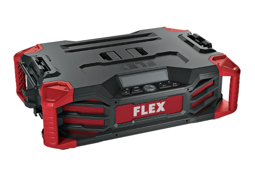 FLEX RD SP 12/18/230 jossa tehokkaat 2x10W ulostulo. Sisäänrakennettu laturi joka lataa akkua kun radio on kiinnitetty verkkovirtaan. Mahdollisuus liittää StackPack säilytysjärjestelmään.